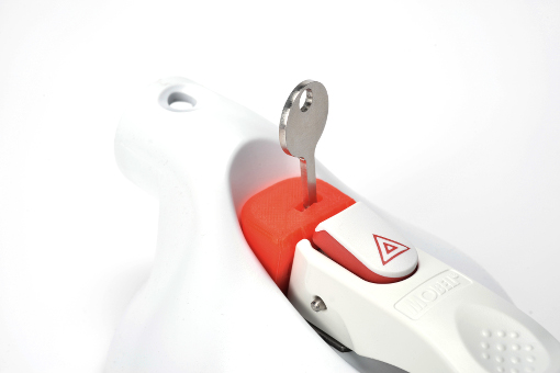 To avoid that the patented mobile system get stolen, a safety lock should be used, specially in hotels, hospitals, nursing home and other public institutions.